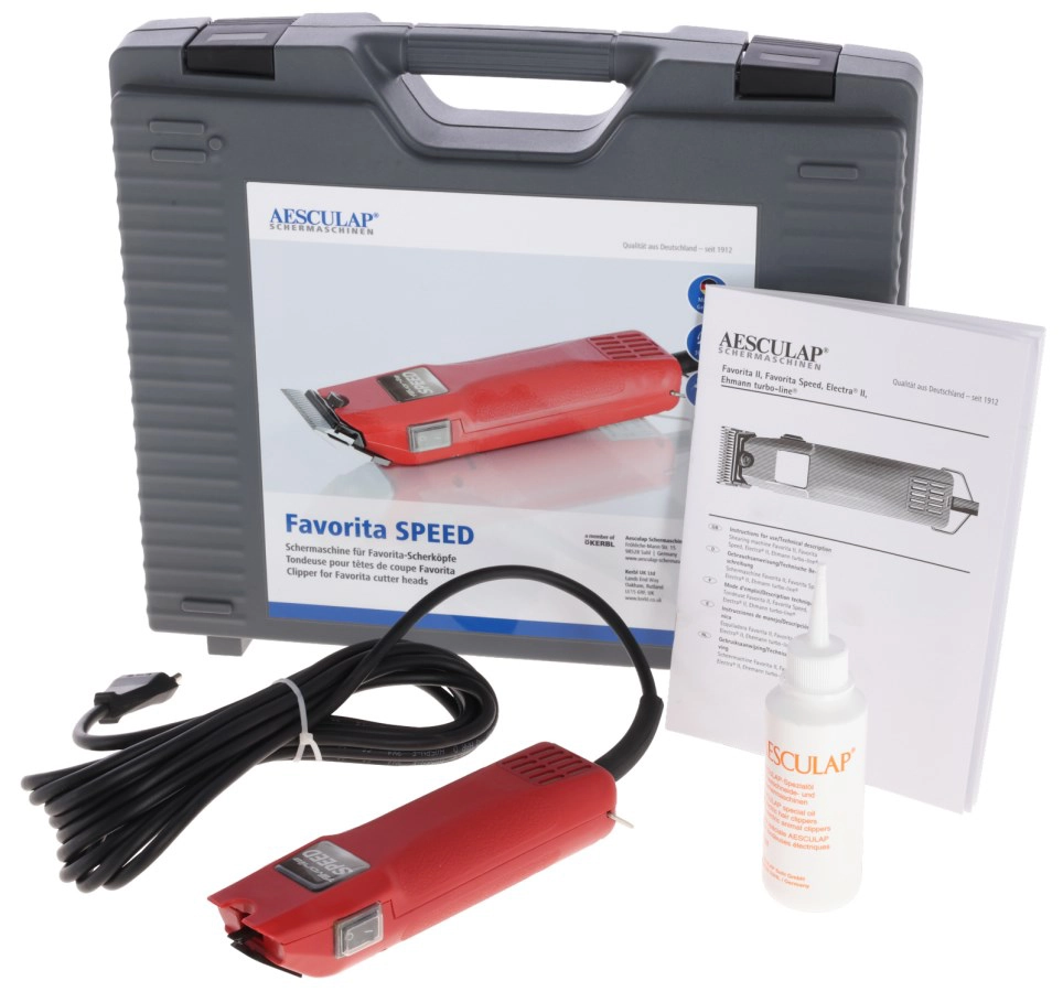 Die Favorita II Speed wird all jene überzeugen, die schnellere Motorumdrehungen und dadurch mehr Geschwindigkeit am Scherkopf benötigen, um äußerst schwierige Fellbedingungen oder sehr große Hunde in noch kürzerer Zeit scheren zu können.