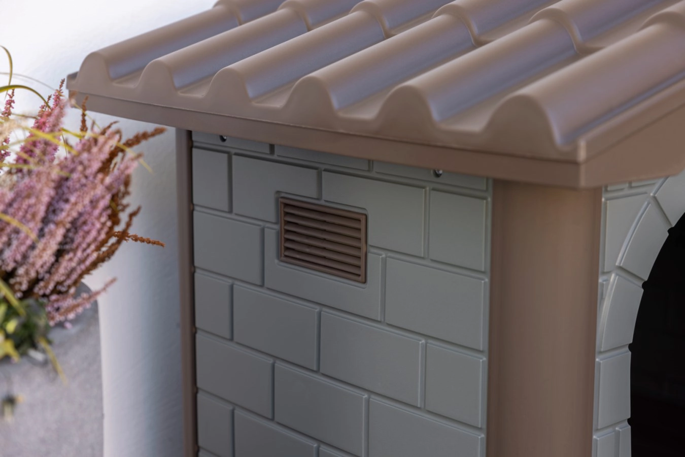 Temperaturregulierendes Dach: Die doppelwandige Bauweise des Daches hält Hitze ab und speichert Wärme, was für ein angenehmes Klima in der Hundehütte sorgt.