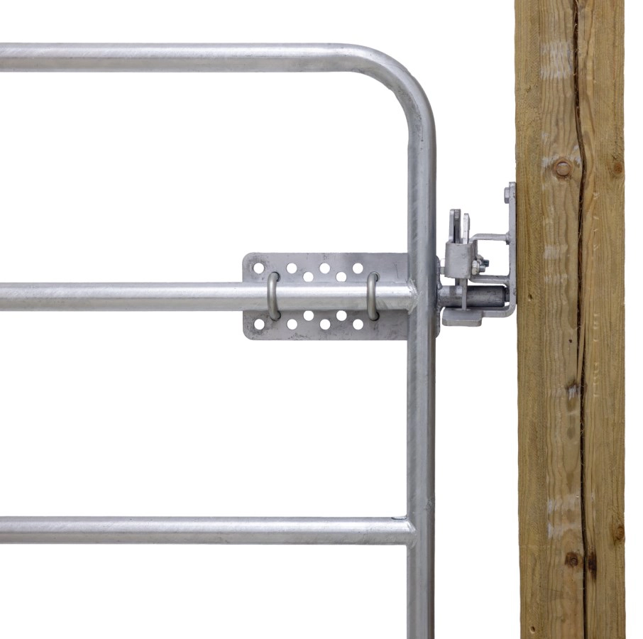 Das Zwei-Wege-Schloss ermöglicht ein Öffnen von Weidetoren in beide Richtungen, ist aus robustem, feuerverzinktem Metall gefertigt und passt auf alle handelsüblichen Weidetore – für eine sichere und zuverlässige Torverriegelung.