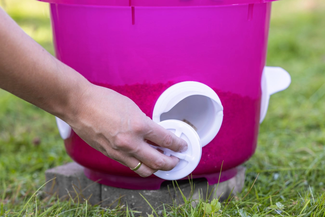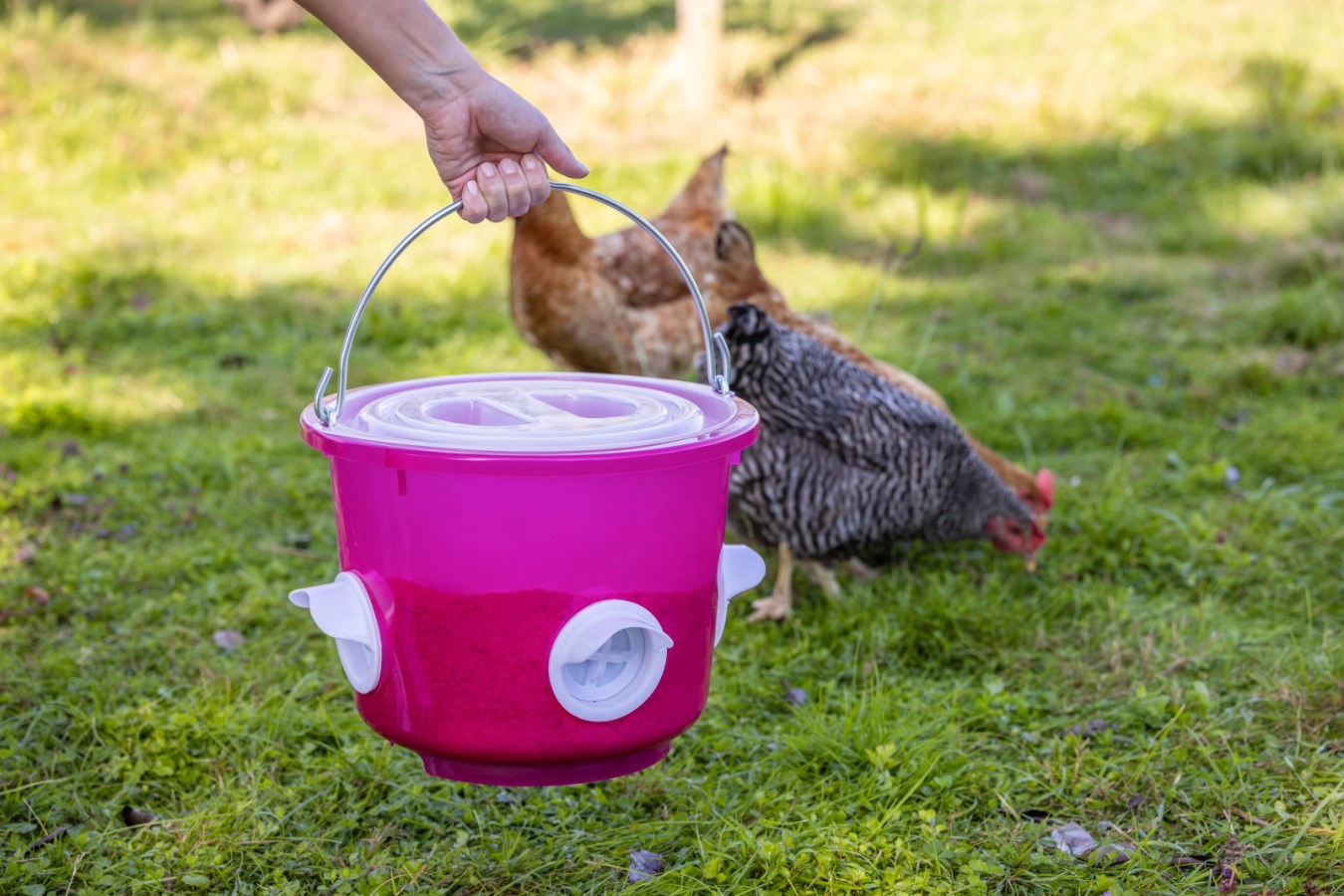 Robust und für Hühner ausgelegt: Das Material des 12-Liter-Eimers ist auf die Anforderungen im privaten Geflügelhof abgestimmt. Unorganisierte Fütterung, Verschmutzungen und Futterverlust können minimiert werden.