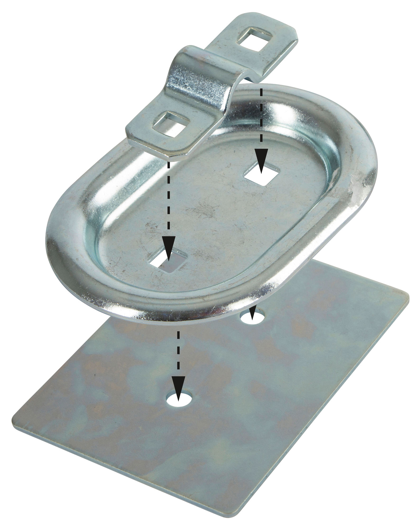 Verzinkte, korrosionsbeständige Gegenplatte für die sichere Montage von Zurrpunkten.