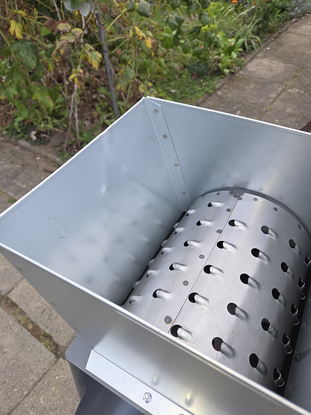 - das Fußgestell, der Mühlenkörper und die Walze sind aus Stahl gefertigt